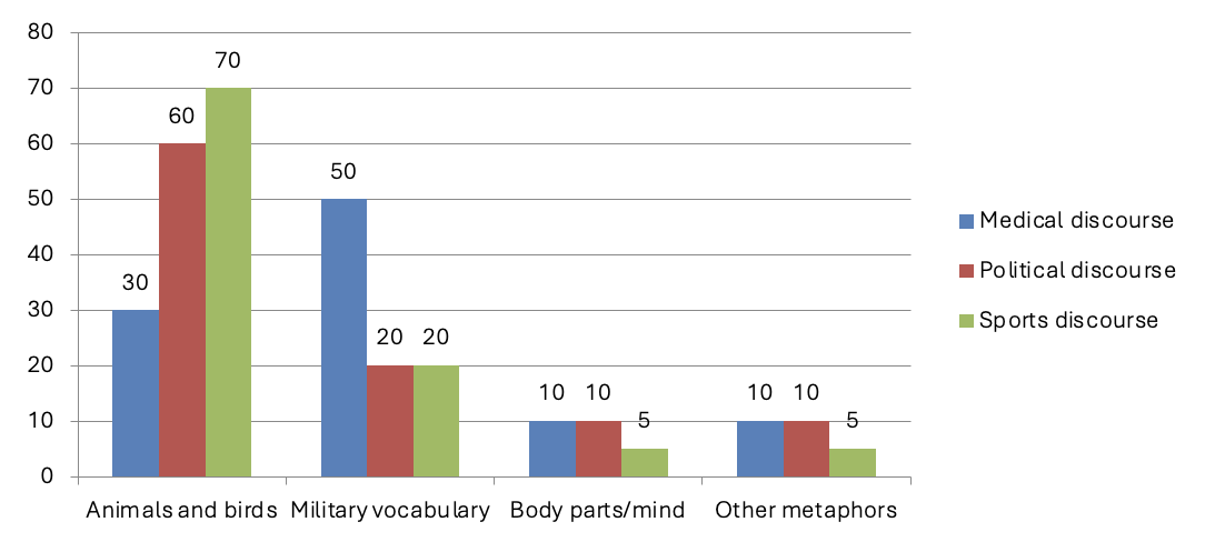- Evidence that military metaphors dominate medical discourse, zoomorphic imagery structures political evaluation, and strength-based metaphors shape sports reporting.