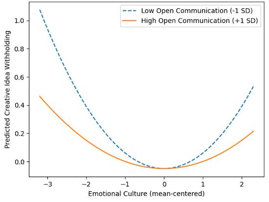 - Emotional culture shows a U-shaped effect on creative idea withholding.